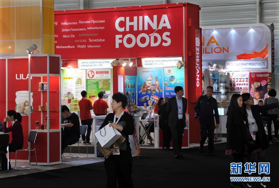 10月19日,人们在法国巴黎的2014巴黎国际食品展上参观。当日,为期五天的2014巴黎国际食品展在位于北郊的维勒班展览中心拉开帷幕,来自世界各地6000多家展商参展。展品包括水果、蔬菜、海鲜、调味品、奶制品、甜品、酒类、饮料、食品加工机械等。新华社记者陈晓伟摄