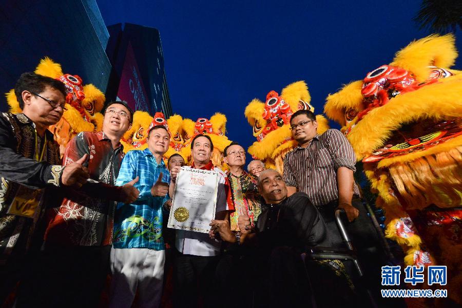 10月19日,在马来西亚吉隆坡,三百狮头点睛仪式获颁“马来西亚纪录大全”证书。当日,为配合由马来西亚龙狮麒麟总会主办的舞狮文化大汇演“百狮盛会”,三百狮头点睛仪式在马来西亚吉隆坡举行。 新华社发(张纹综摄)