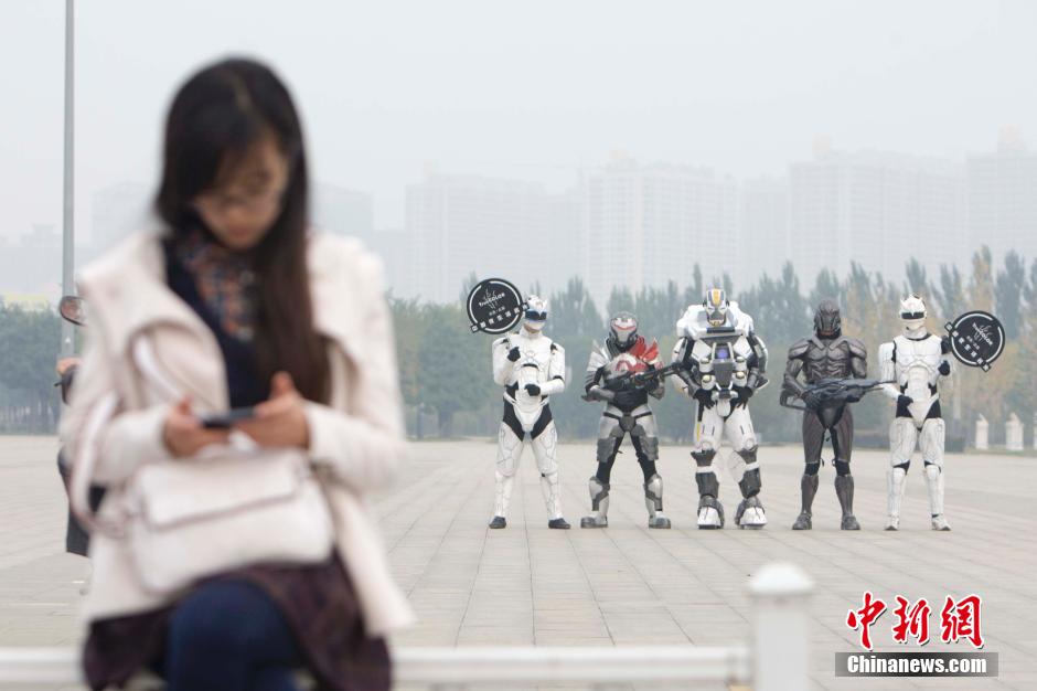 10月19日,“克隆战士”亮相太原国际车展,吸引了众多当地民众围观拍照留念。当日,山西太原第八届TOP国际车展正在进行,来自海内外的数十家知名汽车品牌纷纷参展。中新社发 张云 摄