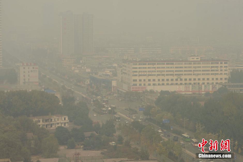 10月19日,山西太原被雾霾笼罩,PM2.5数值一度达到318,属于严重污染。当日,中国华北、黄淮等地的霾天气进入本轮过程的最强时段,中央气象台今晨继续发布霾黄色预警。中新社发 张云 摄