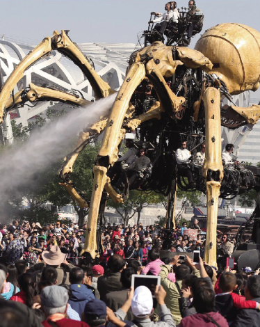 法国机械今起巡演,“蜘蛛”亮相奥园,引来围观 摄/林晖