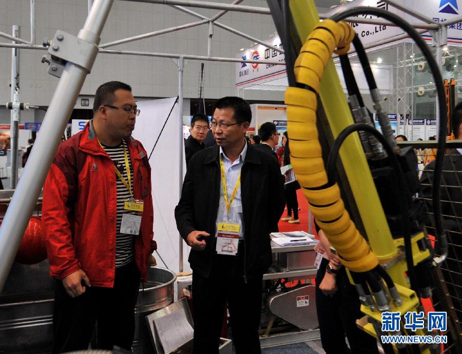 10月21日,参会者在参观矿业大会上展出的设备。当日,2014中国国际矿业大会在天津梅江会展中心开幕,大会以“创新驱动、持续发展”为主题,围绕矿业可持续发展,全球矿产勘查形势、矿业与资本市场、绿色矿山、矿产资源综合利用等专题进行研讨。来自五十多个国家和地区的政府官员、专家学者和矿业企业、金融机构的代表,共计7000多人参会参展。大会将举办主题论坛,国外矿业部长论坛、矿业发展高层论坛,并将推出30多场专题论坛和合作项目推介会。新华社记者 张晨霖 摄