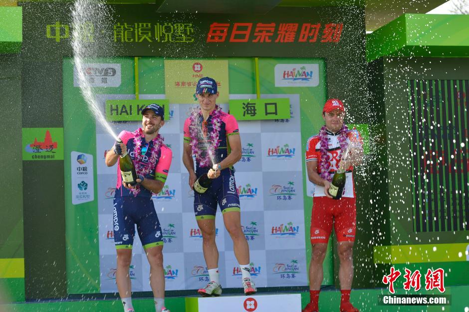 图为尼科洛·博尼法齐奥(中)、沃特·韦伯特(右)、安德烈·帕里尼开香槟庆祝。中新社发 骆云飞 摄