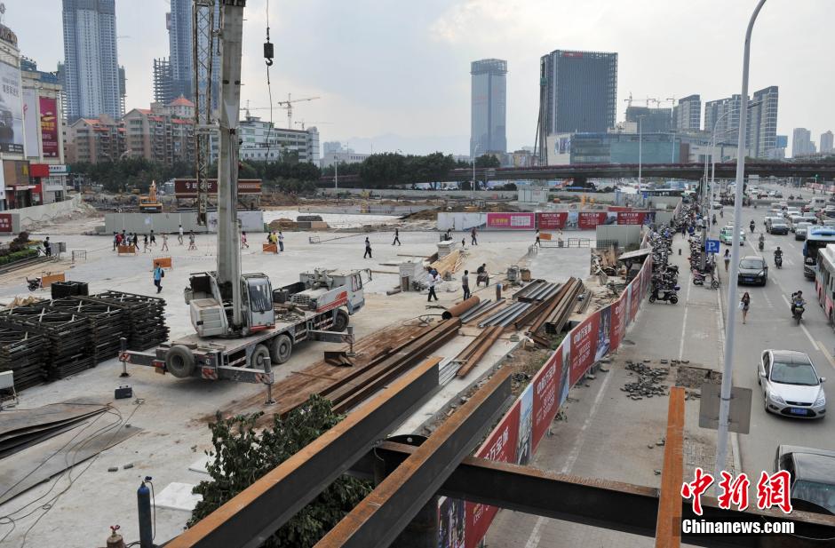10月21日,福州宝龙万象广场平战结合人防工程有序建设中。据悉,该项目为中国第一个大型平战结合人防工程,按防核武器抗力级别6级设防。人防工程占地8.2万平方米,总建筑面积约19.5万平方米,总投资约22亿元。该工程地下建成三层,按大型融合式人防综合集成体做功能分区和设防,综合集成体包括城市下穿道、地铁站及区间、下沉广场、商铺、车库和设备用房。整个工程预计2016年5月竣工。中新社发 吕明 摄