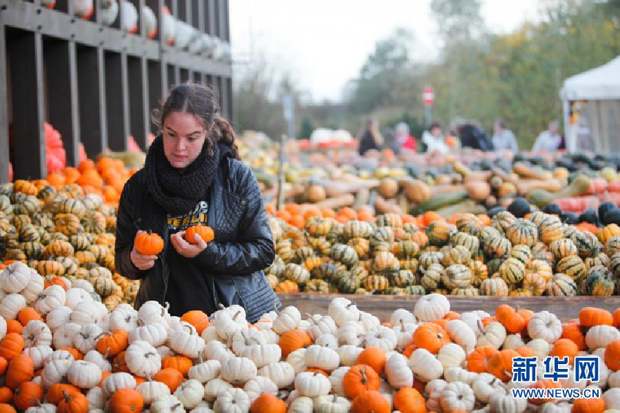 10月21日,在德国首都柏林南部的一座小镇,一名游客在南瓜集市上挑选南瓜。每年10月31日是西方国家传统节日万圣节,南瓜在万圣节中扮演着重要的角色。万圣节将至,德国柏林南部的一座小镇举办了一年一度的南瓜集市,展出来自世界各地近450个品种的南瓜,总数超过10万个。新华社记者张帆摄