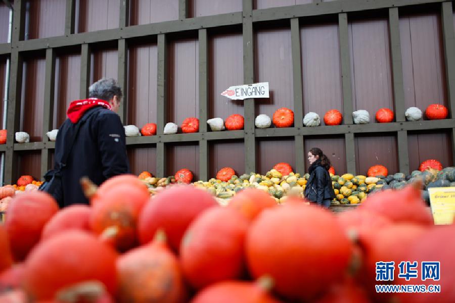 10月21日,在德国首都柏林南部的一座小镇,人们在南瓜集市上挑选南瓜。每年10月31日是西方国家传统节日万圣节,南瓜在万圣节中扮演着重要的角色。万圣节将至,德国柏林南部的一座小镇举办了一年一度的南瓜集市,展出来自世界各地近450个品种的南瓜,总数超过10万个。新华社记者张帆摄