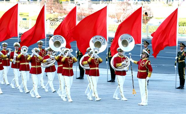【新式礼宾服】解放军仪仗队和军乐团变得更“潮”了。8月19日,新式礼宾服首次亮相大会堂。于建军节正式启用的新装,不仅样式、用料、颜色和标志服饰有精心改动,还新增了仪仗队女礼宾服、夏礼宾服和军乐团夏仪式演奏服、行进演奏服等。在灰白色调的广场上,军乐团首次采用的中国红,非常打眼。