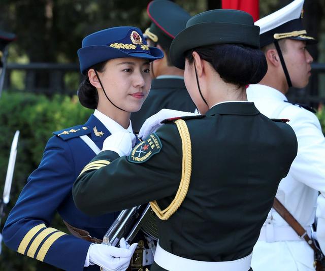【女子仪仗兵】今年5月12日,女子仪仗兵首次亮相,接受中外领导人检阅。首批选拔的30位“铿锵玫瑰”,都是高挑的“萌妹子”,身高都在1.73米以上,八成拥有大专以上学历。从2月份开始,她们经过3个月强化训练,才能英姿飒爽地出现在人民大会堂东门外广场。这是三军仪仗队建队62年来首次由女兵参与执行外交司礼任务。站在空军护旗手位置的程诚说:“我感到无比的自豪和幸运。”