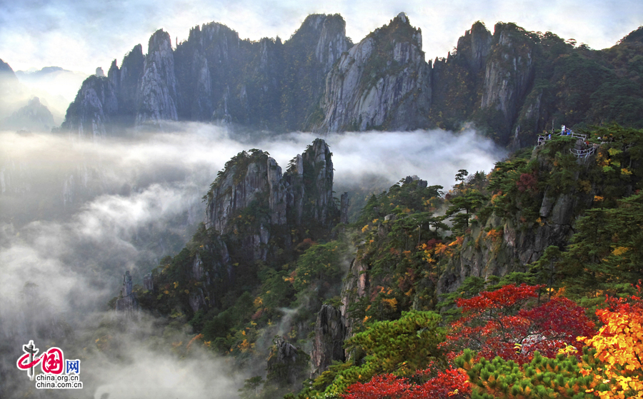 2013年秋,著名旅游杂志《孤独星球》盘点了全球十大欣赏秋景的最佳地点,黄山上榜,中国唯一。有人说,如果你没在秋天去过黄山,就永远不会知道黄山最美的季节是何等的震撼人心;也有人说,如果你没有看过秋天的黄山,就不会知道自然的造化如何创造出世界上最摄人心魄的美丽。大自然正用画笔浓墨重彩地勾勒灿若图绣的世界,远峰近松,到处充满了秋色的诱惑,让人难以抗拒。