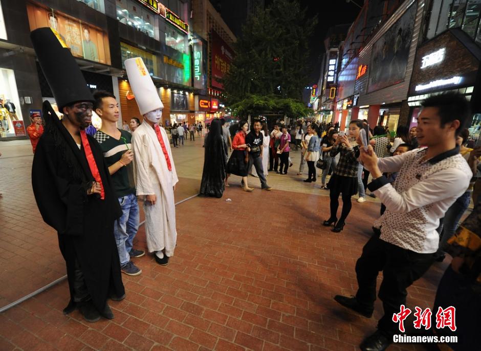 10月23日晚,为迎接即将到来的万圣节,长沙世界之窗的工作人员化妆成“丧尸”来到街头玩起了快闪,吸引了众多市民围观。杨华峰 摄