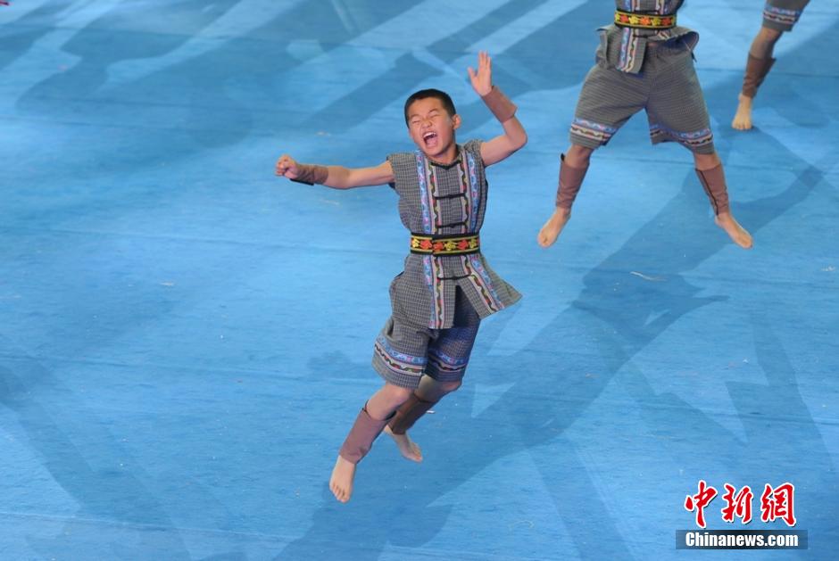图为凤凰县代表团的苗族小朋友表演苗拳。 杨华峰 摄