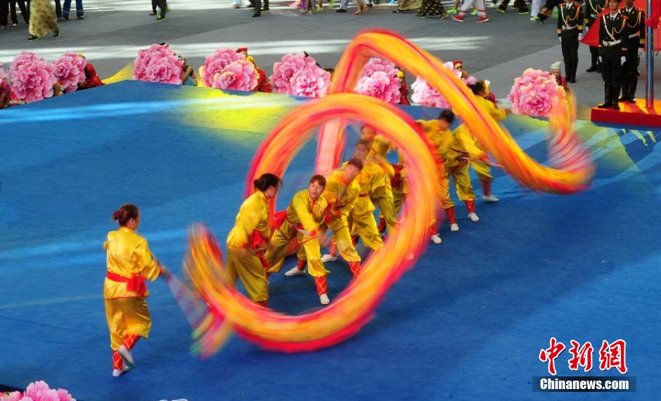 图为湘潭代表团的舞龙表演。 杨华峰 摄