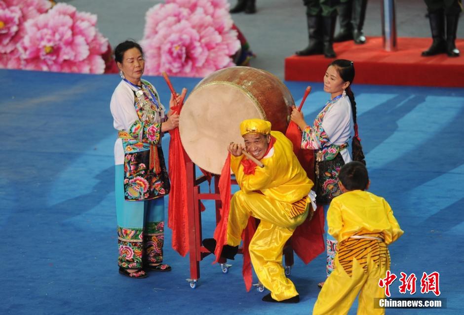 图为花垣县代表团的苗族猴儿鼓表演。 杨华峰 摄