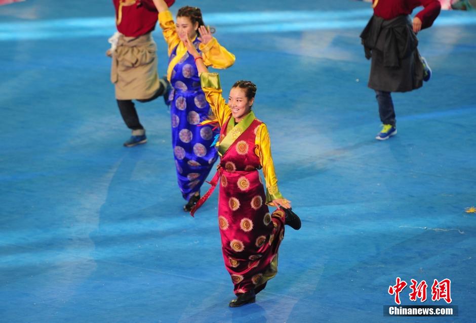 图为娄底市代表团的藏族姑娘翩翩起舞。 杨华峰 摄