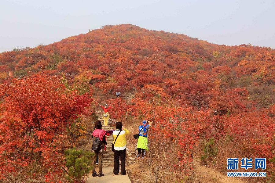10月23日,游人在北京房山波峰岭游览。 观赏红叶是北京市民在深秋时节的一项爱好。此时此景可谓秋满波峰岭,红叶正当时。 新华社发(张燕辉摄)