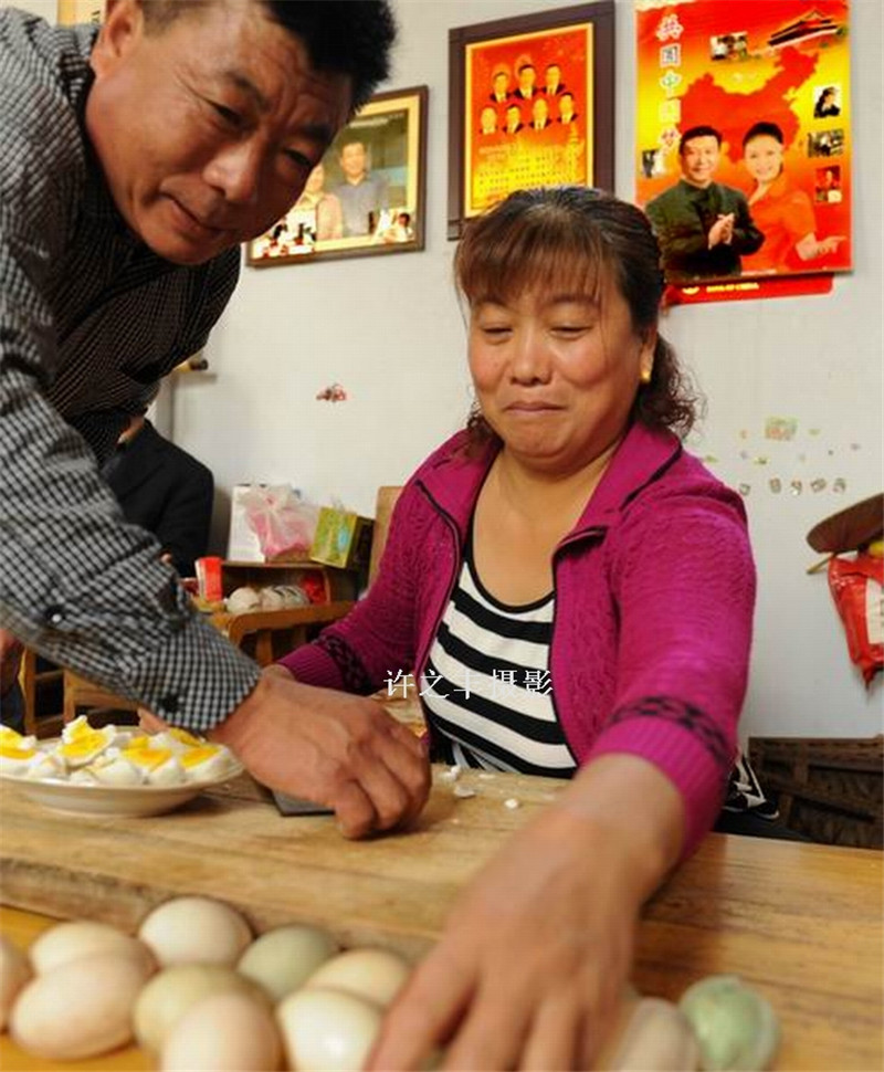 山东省泰安市岱岳区满庄镇上泉村,村内泉涌成河,村民在河中放养鸭子,出产的“上泉鸭蛋”味美醇正,成为当地的抢手特产,供不应求。 2014年10月19日在村民白崇亭和张庆芝的家里,白崇亭说:“过去我们只种粮食,年收入仅千余元,现如今家里养鸭子700多只,全年收入可以达到19.5万元。加上我们的子女全部免除了学杂费,好政策给俺们带来了好日子!”工人日报-中工网记者 许之丰摄影报道