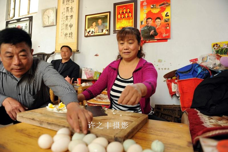 山东省泰安市岱岳区满庄镇上泉村,村内泉涌成河,村民在河中放养鸭子,出产的“上泉鸭蛋”味美醇正,成为当地的抢手特产,供不应求。 2014年10月19日在村民白崇亭和张庆芝的家里,白崇亭说:“过去我们只种粮食,年收入仅千余元,现如今家里养鸭子700多只,全年收入可以达到19.5万元。加上我们的子女全部免除了学杂费,好政策给俺们带来了好日子!”工人日报-中工网记者 许之丰摄影报道