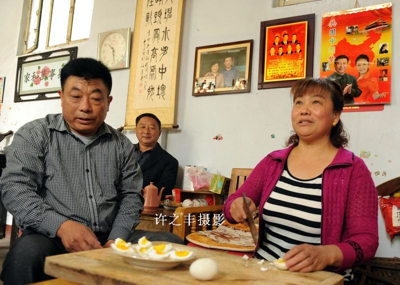 山东省泰安市岱岳区满庄镇上泉村,村内泉涌成河,村民在河中放养鸭子,出产的“上泉鸭蛋”味美醇正,成为当地的抢手特产,供不应求。 2014年10月19日在村民白崇亭和张庆芝的家里,白崇亭说:“过去我们只种粮食,年收入仅千余元,现如今家里养鸭子700多只,全年收入可以达到19.5万元。加上我们的子女全部免除了学杂费,好政策给俺们带来了好日子!”工人日报-中工网记者 许之丰摄影报道