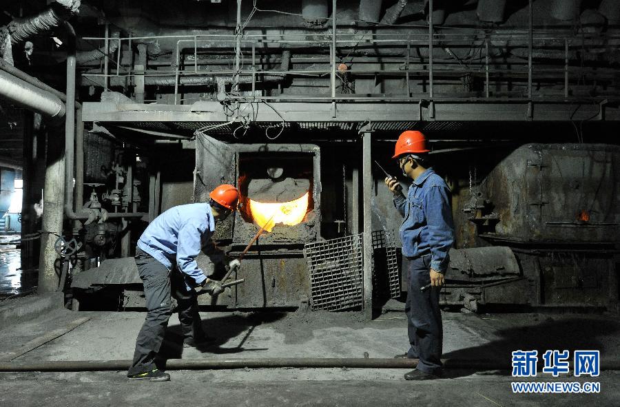 10月24日,在宁夏银川市热电厂车间,工人在疏通锅炉外围的炉灰。随着冬季供暖期的临近,银川市各大供热公司供热设备的检查与调试已全面完成,供热管网的运行也进入了最后测试阶段。据了解,2014年银川市将于11月1日起正式供暖,部分供热公司于10月25日开始试验性供暖。新华社记者 彭昭之 摄