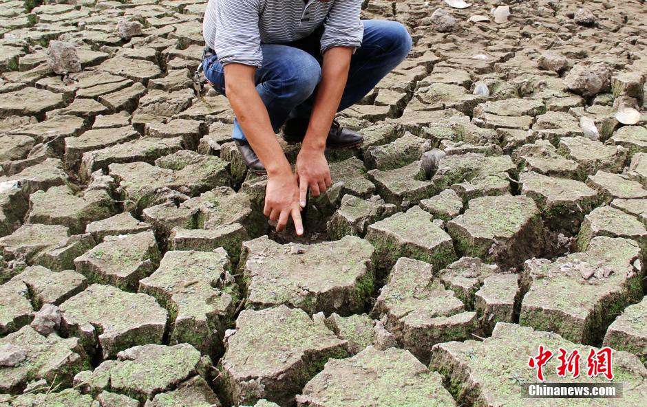 10月27日,在江西省遂川县珠田乡大龙村一位村民站在干涸开裂水塘里讲述旱灾情况。据了解,由于今年秋季出现持续干旱少雨的天气,遂川县旱情影响逐渐显现,特别是随着水源不断减少,农田秋冬作物生长和栽种受到一定影响。 李建平 摄
