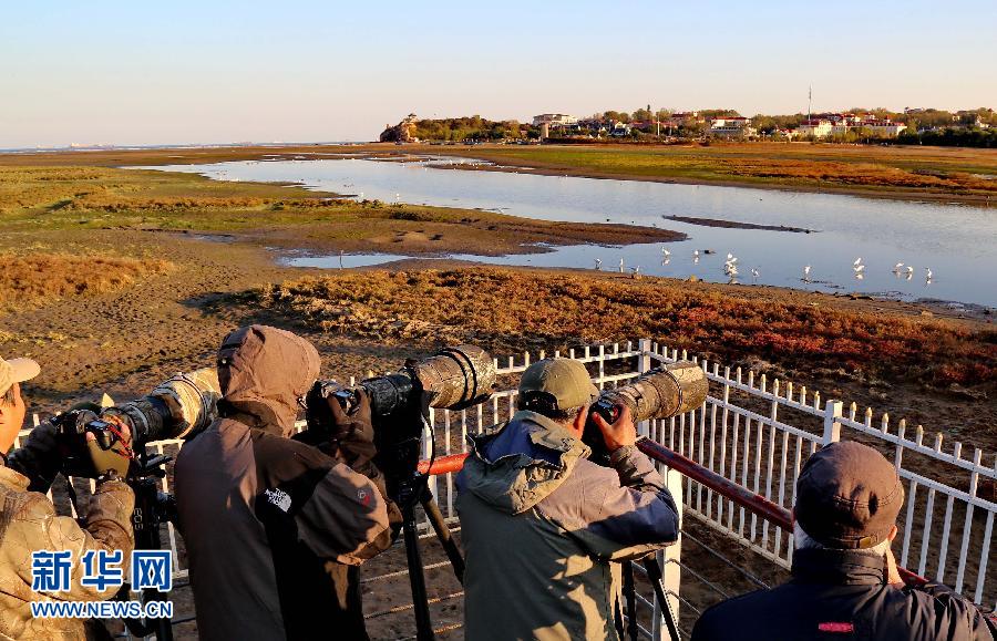 观鸟爱好者在北戴河鸽子窝公园附近的湿地拍摄鸟类(10月27日摄)。时下,随着大批迁徙候鸟飞抵北戴河沿海湿地,北戴河进入最佳观鸟期。监测显示,每年约有400多种、上千万只候鸟南北迁徙经过这里,还有种类数量可观的夏候鸟和留鸟在本地繁衍生息,鸟类资源丰富。新华社记者 杨世尧 摄