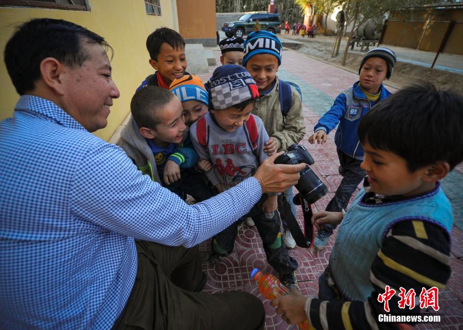 图为孩子们是工作组的常客,每天一放学,孩子们聚集在村委会大院里玩耍,有时还会缠着工作组队员为他们照相。 中新社发 刘新 摄