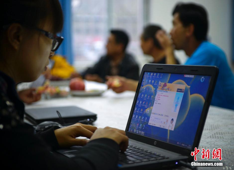 图为工作组最年轻的队员李玫,刚过完25岁生日,网络是她和家人、朋友联络的主要工具。 中新社发 刘新 摄