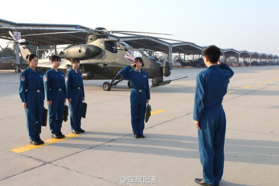 据军报记者微博10月29日报道,中国陆航武装直升机飞行员中的5名巾帼英雄,近日在演练中精彩亮相!经过严格考核,她们正式进入陆航战斗序列。这批女飞行员1年前从空军部队选调到陆航,平均年龄24岁,均为空军航空大学本科以上学历。图片来源:军报记者微博
