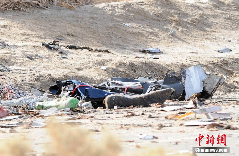 当地时间11月1日,英国维珍银河公司商业宇宙飞船“宇宙飞船二号”坠毁碎片。2014年10月31日,英国维珍银河公司商业宇宙飞船“宇宙飞船二号”在美国加利福尼亚州莫哈韦沙漠地带坠毁,致使飞行员一人死亡,另一人重伤。 中新社发 毛建军 摄