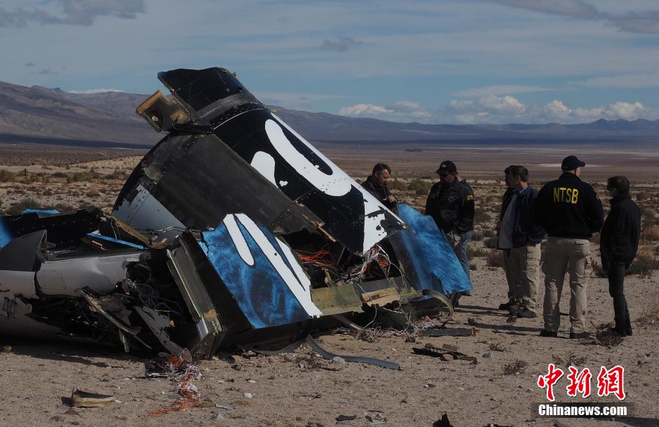 当地时间11月1日,英国维珍银河公司商业宇宙飞船“宇宙飞船二号”坠毁碎片。2014年10月31日,英国维珍银河公司商业宇宙飞船“宇宙飞船二号”在美国加利福尼亚州莫哈韦沙漠地带坠毁,致使飞行员一人死亡,另一人重伤。 中新社发 毛建军 摄