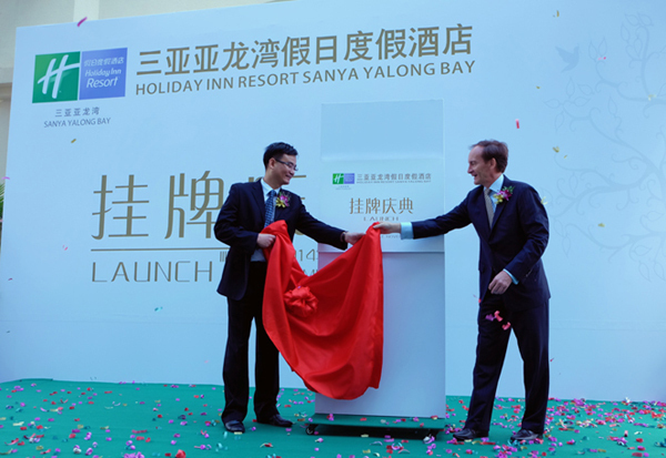 酒店业主方-新天国际总裁三亚亚龙湾海景国际酒店有限公司董事长朱俭勇和洲际集团中国南区及西区运营副总裁马可汗共同揭牌
