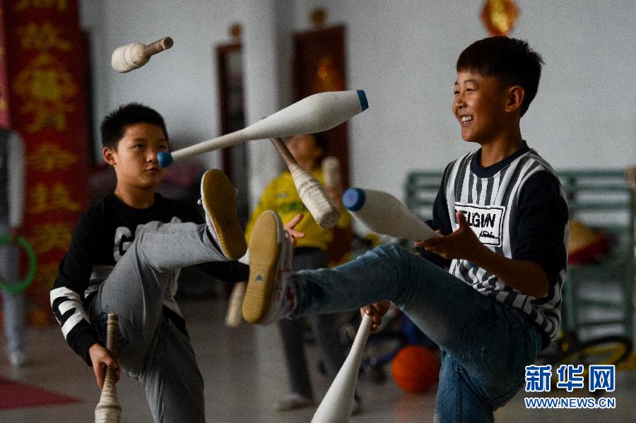 在安徽省阜阳市临泉县杂技艺术学校,有这样一群小学员,年纪都不大,小的7岁,大的也才15岁,他们从小离开父母的怀抱,过着边学文化边苦练基本功的日子。早晨6点,杂技学校的孩子们便起床训练,每天累计练功时间约8个小时。为了能够尽快掌握杂技技艺,他们日复一日地坚持。对孩子们来说,技艺的点滴增进都意味着距离和父母团聚的日子更近了一些,因为多数小学员毕业后将加入到“家庭式”杂技团,和亲人一起表演。作为中国民间杂技之乡,安徽省临泉县拥有各类杂技团队936个,从业人员超过2万人,年创收入近5亿元,杂技产业已经成为当地很多农民致富的主要门路之一,当地很多儿童从小便被家人送到杂技学校学习。据临泉县杂技艺术学校校长候忠义介绍,小学员大多是留守儿童,孩子们吃住、学习、练功都在学校,经过至少三年的刻苦训练,才能进行公开演出。新华社记者 张端 摄