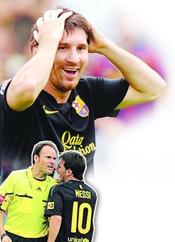 2011赛季西甲联赛巴萨与皇家社会的比赛中,一位球员被裁判无辜“击倒”在地,所幸并无大碍。下半场补时第2分钟。主裁判认定梅西在禁区内假摔,向其出示了黄牌,并上前警告不要假摔。搞笑的是,在裁判抬手向梅西亮出黄牌的一瞬间,他的手肘却不慎击打到了身后的皇家社会中场主力苏鲁图萨。他在挨了主裁的铁肘后,立马失去重心痛得倒在球场上。然而,这位主裁大人却没有发现自己的误伤,继续上前警告梅西。梅西对这一判罚也没有很愤怒,反而微笑着对主裁判解释起来。