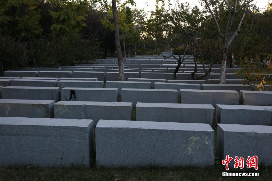 11月3日,河南郑州市区商都路与商鼎路之间的绿化带中,被指酷似“无名墓地”的大理石条。这里马路边的绿化带,幽暗的松柏丛中陈列着一块块灰色的大理石条和巨石块,每块石条相隔1米左右,一排排、一队队整齐地排列。据郑州市环道绿化管理处一名工作人员介绍,这些石条为城市绿化景观石,由一家园林公司提供。杨正华 摄