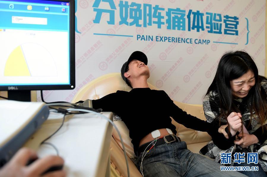 11月3日,在济南艾玛妇产医院,一位志愿者在体验模拟分娩的阵痛。当日,“感恩母爱——分娩阵痛体验”活动在济南艾玛妇产医院举行,志愿者在医护人员的指导下进行“分娩痛楚”极限体验。 新华社记者 郭绪雷摄 图片来源:新华网