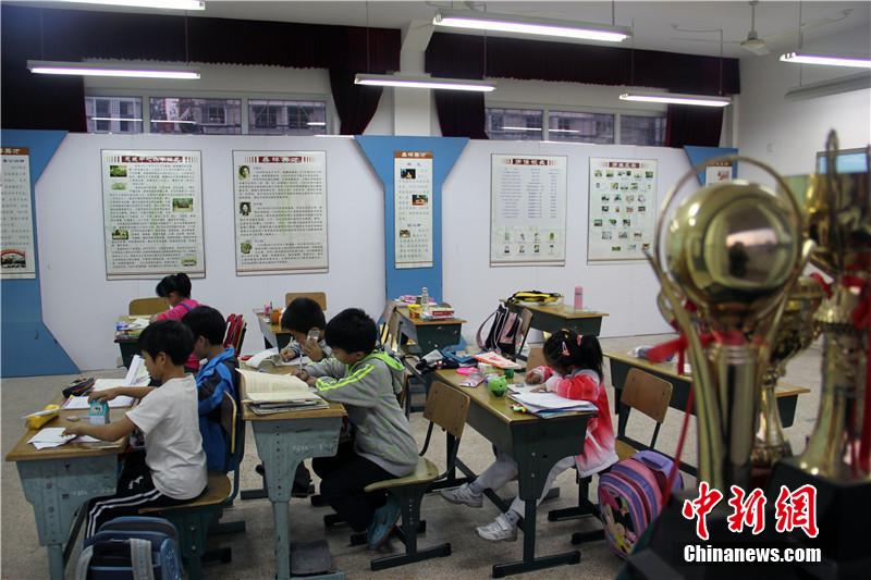 这一刻的教室显得分外安静,孩子们都在认真地写作业。校史室里放着很多奖杯,叶梦成骄傲地说道:“这都是学校集体的荣誉。”脱下练功服,换上平时穿的衣服,叶梦成开始写作业。他的学习成绩不错,还是学校的大队委员。今天他的作业并不多,就只有英语作业。 林波 摄