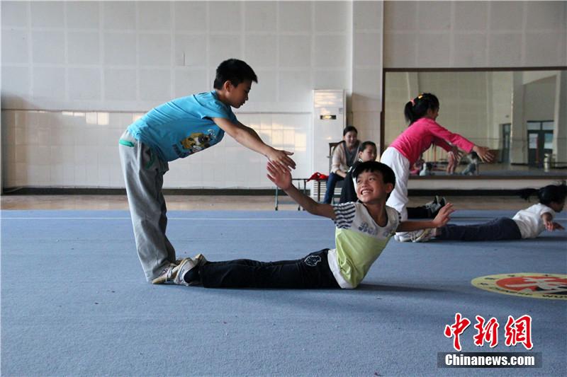 叶梦成是这些武术孩子眼中的“偶像”,才10岁的他已经获得了浙江省大大小小的奖。练习很辛苦,但叶梦成从来不觉得累。想家的时候,他就会给家里打电话,而爸爸妈妈想他的时候就会偷偷到学校里来看他一眼,有的时候还被他发现了。一边练习,一边享受,叶梦成说到平时的兴趣爱好,口中不由自主地冒出“武术”这个词。小小少年心中有个强国梦,叶梦成是个“体育迷”,他偷偷说道:“以后可以到奥运赛场上拿金牌”。图为叶梦成练习基础动作。林波 摄