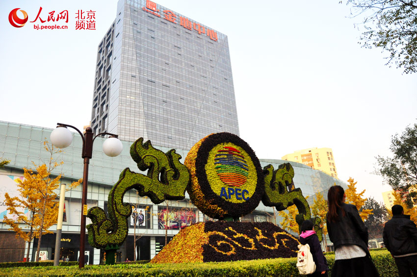 大望路金地中心APEC主题花坛。人民网 赵青摄
