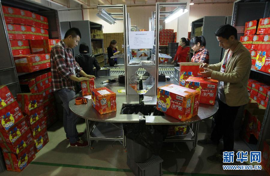 “双十一”前夕,自动化物流配送中心——“华东一号”与众多电子商务企业深度合作,定制高效的第三方仓储和物流服务,全力备战网购物流高峰。据介绍,由上海杜隆实业投资建造的“华东一号”目前每日的订单处理能力为20万单,每日单一商品处理量可达120万件,二期工程完工后,每日订单处理量将跃升至80万单。“华东一号”软硬件系统实时对接各大电商平台和物流运输企业,网购用户下单后,软件自动获取订单信息并控制自动化设备执行出库,平均订单履行时间仅为十分钟。系统内还设置了多重执行策略和数据模型,能够智能地对电商发出的操作指令进行充分优化,保证仓储物流配送链条的高效率。新华社记者 裴鑫 摄