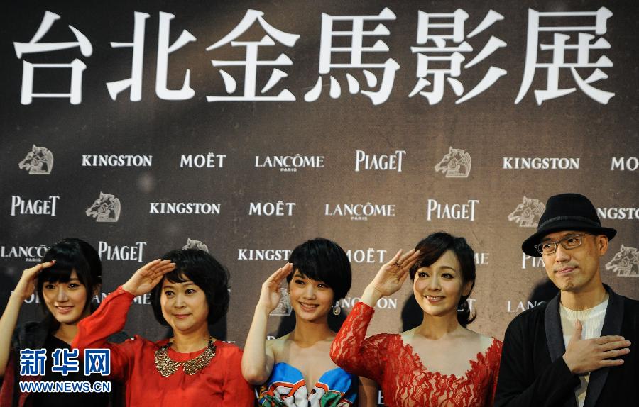 11月6日,2014台北金马影展开幕影片《极光之爱》的部分主创人员在影展开幕式上。当日,2014台北金马影展在台北市京华城开幕,本届影展将持续至11月27日,期间将放映近200部影片。 新华社记者申宏摄