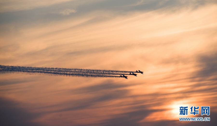 11月4日,山河飞行表演队在株洲进行3机编队飞行训练。新华社发