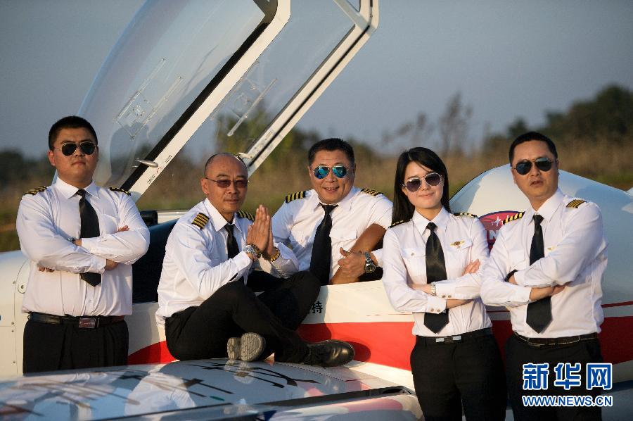 11月4日,山河飞行表演队飞行员魏天、林宏、侯珉、杨思洁、高明(从左至右)在阿若拉SA60L轻型运动飞机前留影。 11月6日,经过近800公里、4个多小时的飞行,国内第一支“全国产”飞行表演队——“山河飞行表演队”从株洲山河科技机场直飞珠海金湾机场。表演队使用4架山河阿若拉SA60L轻型运动飞机,6名在编飞行员均为中国籍,有经验丰富的原空军资深飞行员,也有刚取得民航执照的年轻飞行员。飞行队伍的年龄涵盖了“60后”“70后”“80后”和“90后”,队员们管自己就叫“6789编队”。 2014年8月成立以来,经过近3个月的艰苦训练,基本达到了预期的目标,能够较好地完成三机低空编队等表演动作。飞行表演队队长侯珉说,抵达珠海后将马上开展适应性训练,在第十届中国国际航空航天博览会上献上“山河飞行表演队”的处女秀。新华社发