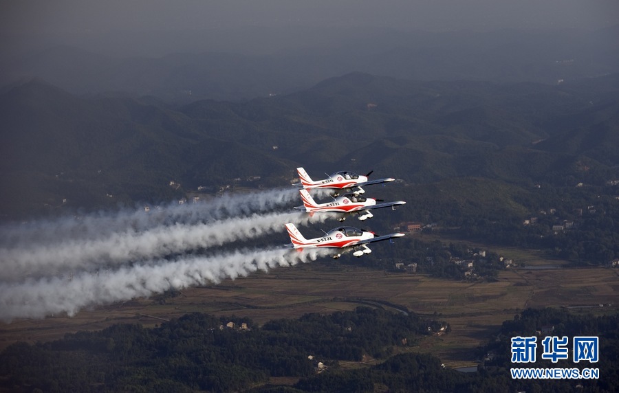 11月4日,山河飞行表演队在株洲进行3机编队飞行训练。新华社发