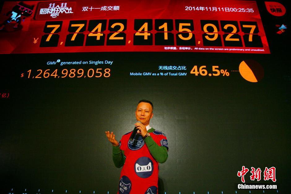 11月11日,阿里巴巴集团CEO陆兆禧接受媒体采访。据悉,今年双十一,是历年商家数目参与最多的一年,仅天猫就有近2.7万商家、4.2万个品牌参与其中。天猫总裁王煜磊表示,双11早已不再是天猫的双11,而是属于全社会、全球的双11。中新社发 李晨韵 摄