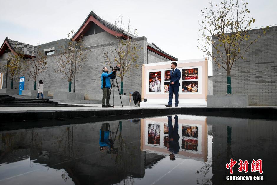 11月11日,APEC领导人非正式会议在北京雁栖湖国际会议中心举行,图为一名外国记者在APEC领导人非正式会议新闻中心内连线直播。中新社发 张浩 摄