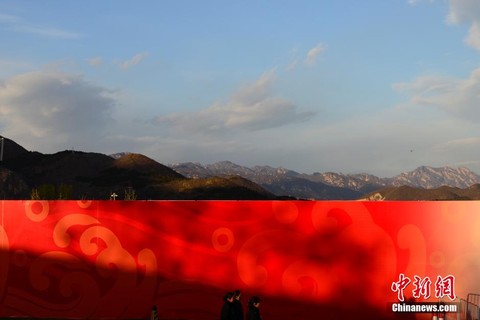 11月11日,正在举办亚太经合组织(APEC)第二十二次领导人非正式会议的北京雁栖湖秋高气爽、蓝天绽放。中新社发 廖攀 摄