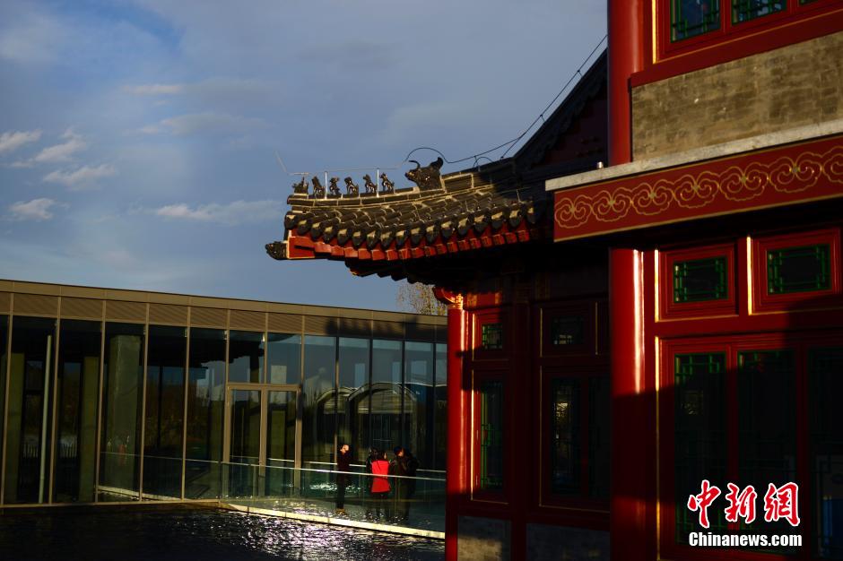 11月11日,正在举办亚太经合组织(APEC)第二十二次领导人非正式会议的北京雁栖湖秋高气爽、蓝天绽放。中新社发 廖攀 摄