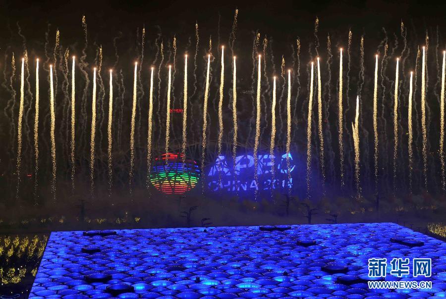 11月10日,北京在奥林匹克公园举行焰火表演。亚太经合组织(APEC)第二十二次领导人非正式会议11月10日至11日在北京举行。 新华社记者 公磊 摄