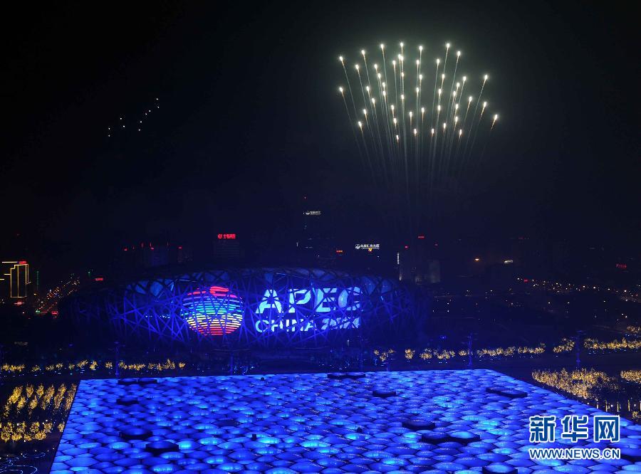11月10日,北京在奥林匹克公园举行焰火表演。亚太经合组织(APEC)第二十二次领导人非正式会议11月10日至11日在北京举行。 新华社记者 公磊 摄