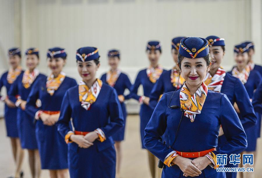 11月10日,乌鲁木齐客运段动车队的“动姐”在进行形体训练。新华社记者 赵戈 摄